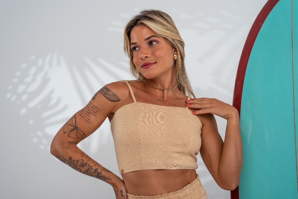 Cropped : Com alças reguláveis e com ziper nas costas .